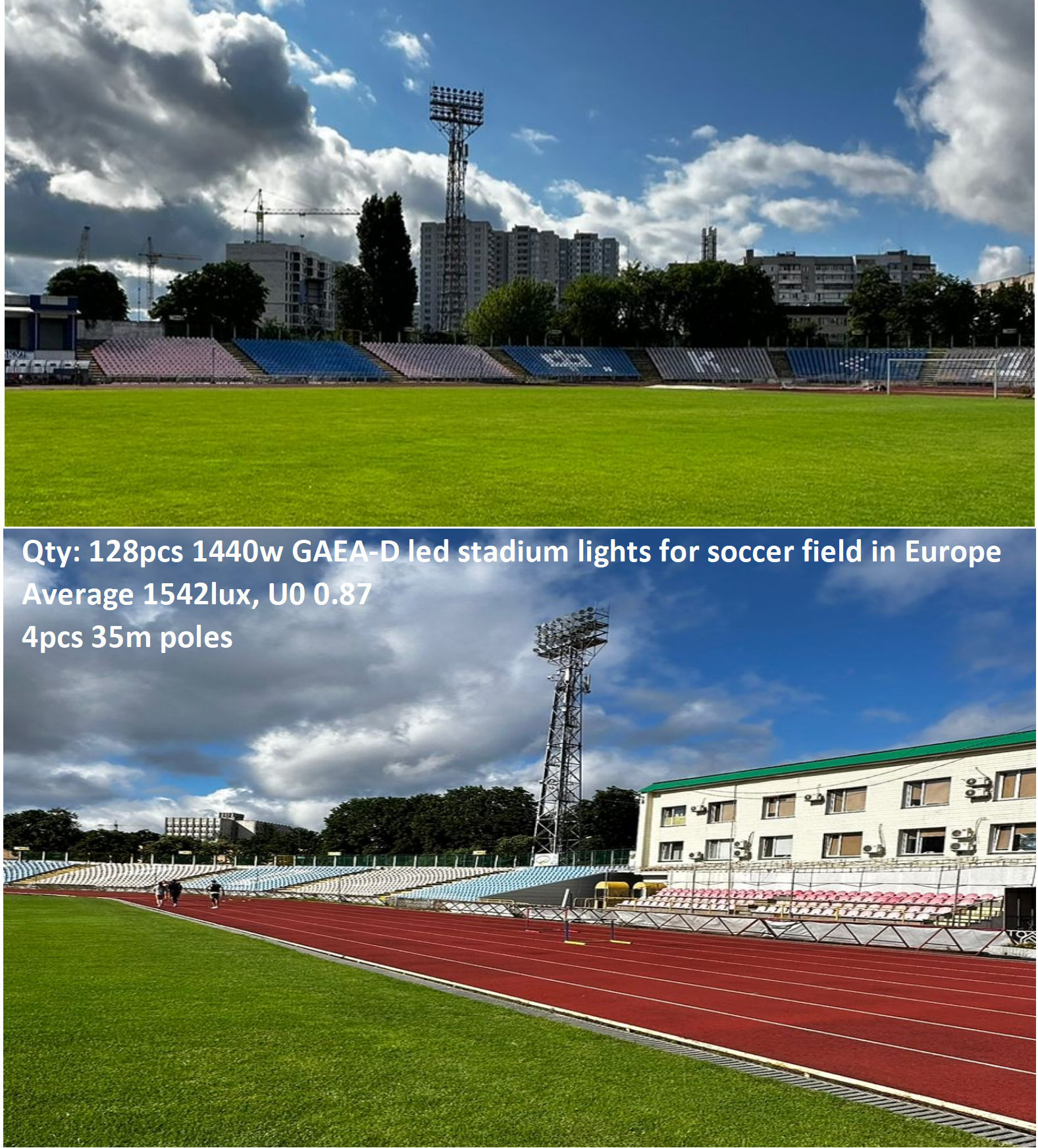 Qty: 128pcs 1440w GAEA-D led stadium lights for soccer field in Europe Average 1542lux, U0 0.87 4pcs 35m poles